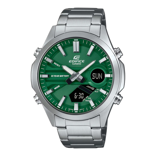 Elevate your style with the Casio Edifice Men's Quartz Watch, featuring a vibrant green dial...