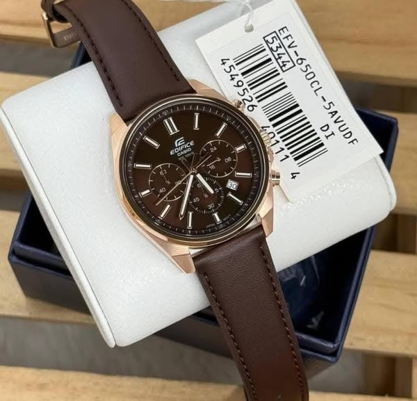 Elevate your wrist game with the Casio Edifice EFV-650CL-5AVUDF, a stylish timepiece that combines modern elegance with practical performance. Designed with a rich brown dial, matching leather strap, and refined rose gold accents, this chronograph is perfect for those who appreciate bold sophistication.