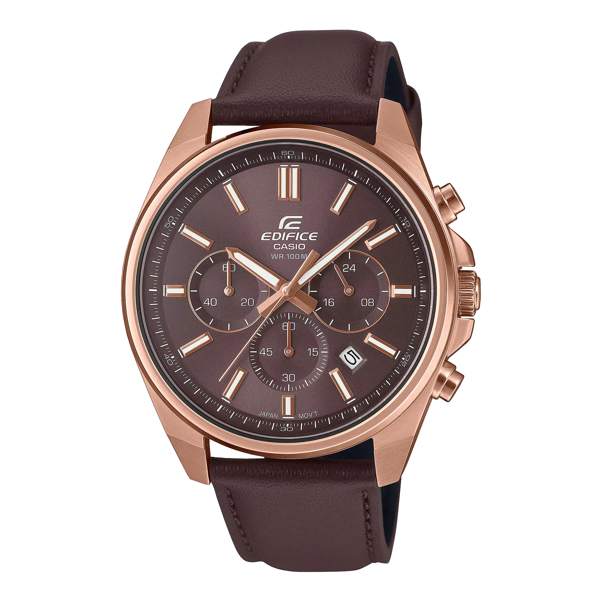 Casio Edifice EFV-650CL-5AVUDF – Brown Chronograph Watch with Rose Gold Accents (Leather Strap | 100M Water Resistance)