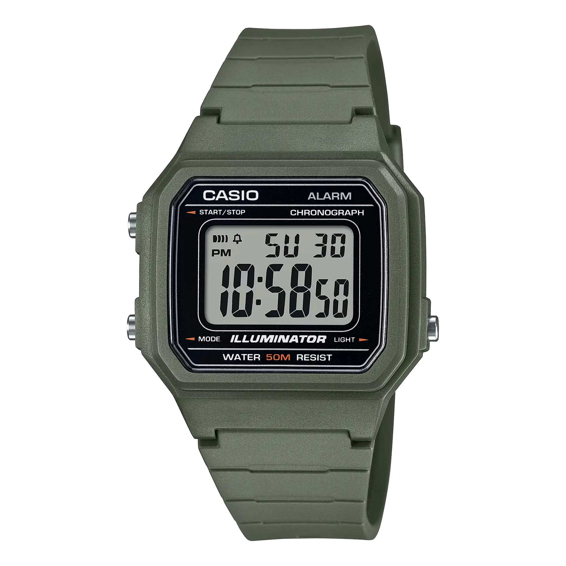 Casio General – W-217H-3AVDF Men's Watch – Black Dial, Green Resin Strap