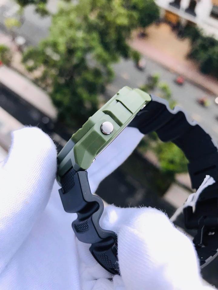 Featuring a sleek square dial with a vibrant green display, this watch stands out with its bold and modern design. The digital display offers clear visibility of the time, while the illuminator ensures readability even in low-light conditions.