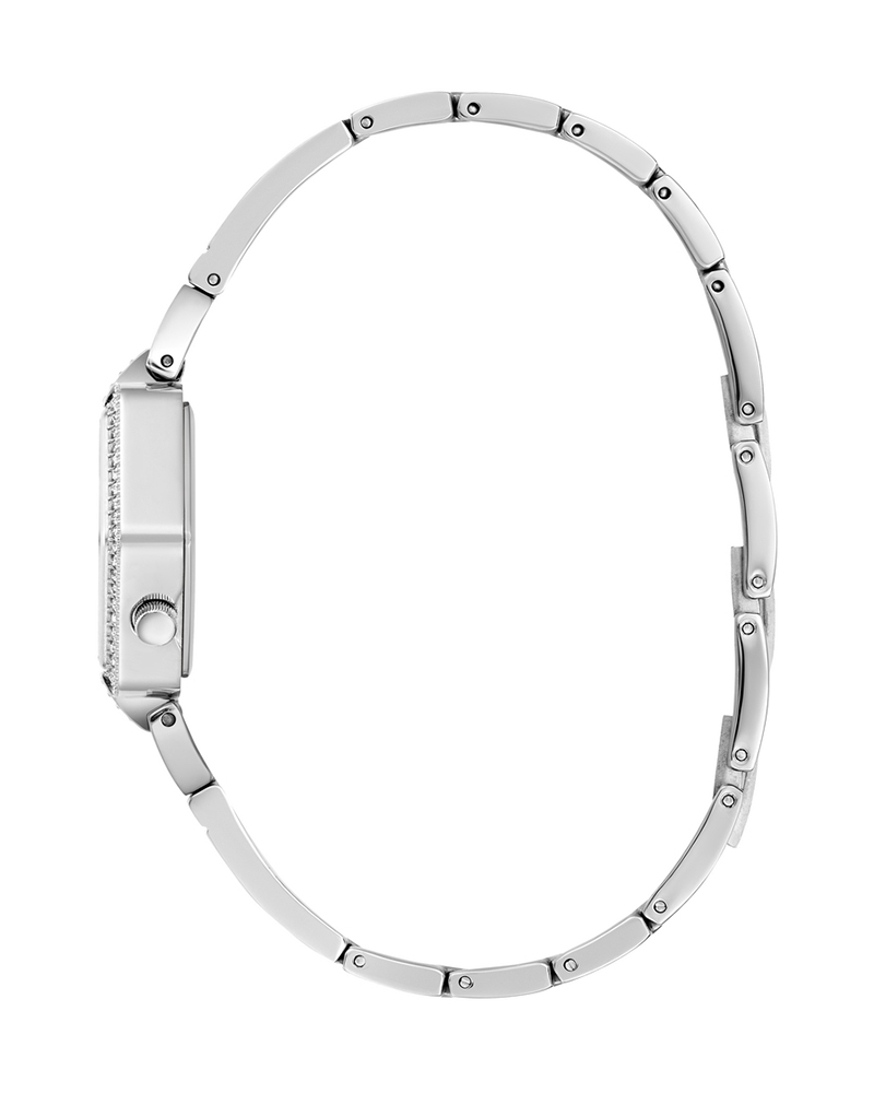 Dial: Polished silver dial with crystal embellishments