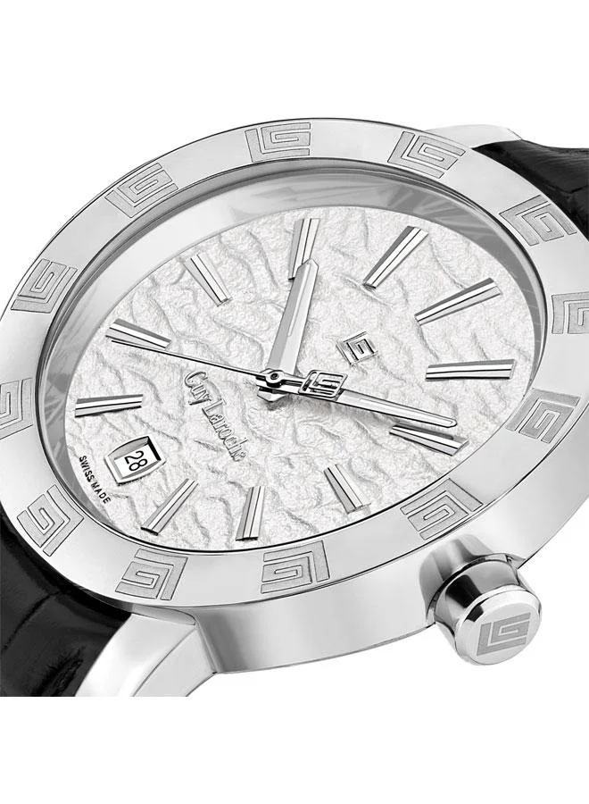 Guy Laroche Alex Men’s GLWGA0000129 Swiss Quartz Watch with White Textured Dial & Black Leather Strap