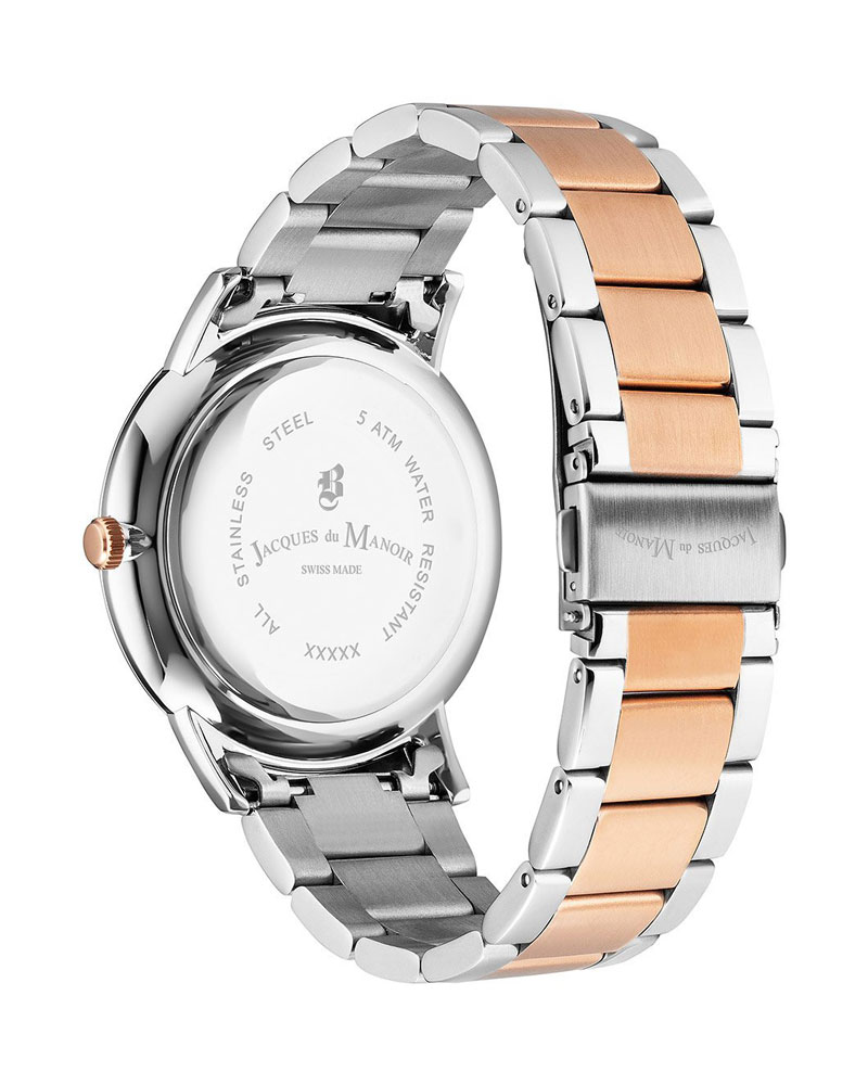 Introducing the Jacques Du Manoir Bravo - 1 Series Watch, Model WG006-05, a stunning example of precision engineering and stylish design. This exceptional timepiece, crafted for the contemporary man, showcases a luxurious two-tone band in rose gold and silver, paired with a classic black sunray dial, encapsulating both boldness and traditional elegance.