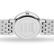 Powered by a precise Swiss quartz movement, this timepiece ensures reliable and accurate timekeeping. The 30mm stainless steel case in a polished silver finish offers a comfortable and graceful fit on the wrist. Completing the design is a sleek silver stainless steel bracelet, providing durability and a refined look.