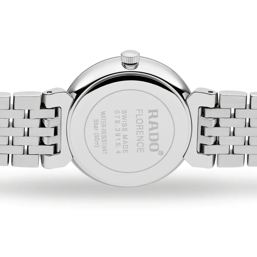With a water resistance of 30 meters, the watch is suitable for daily activities such as hand washing and light splashes. The Rado Florence Classic Diamonds is an ideal choice for women seeking a Swiss-made watch that combines elegance, quality, and timeless style.