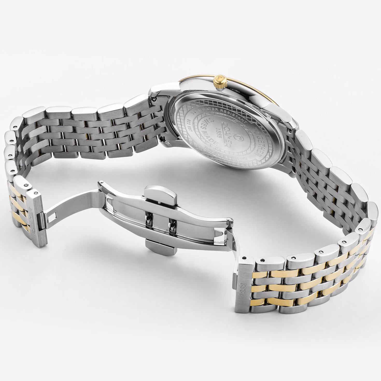 Two-Tone Bracelet: Silver and gold stainless steel bracelet adds versatility and style, secured with a folding clasp for comfort.