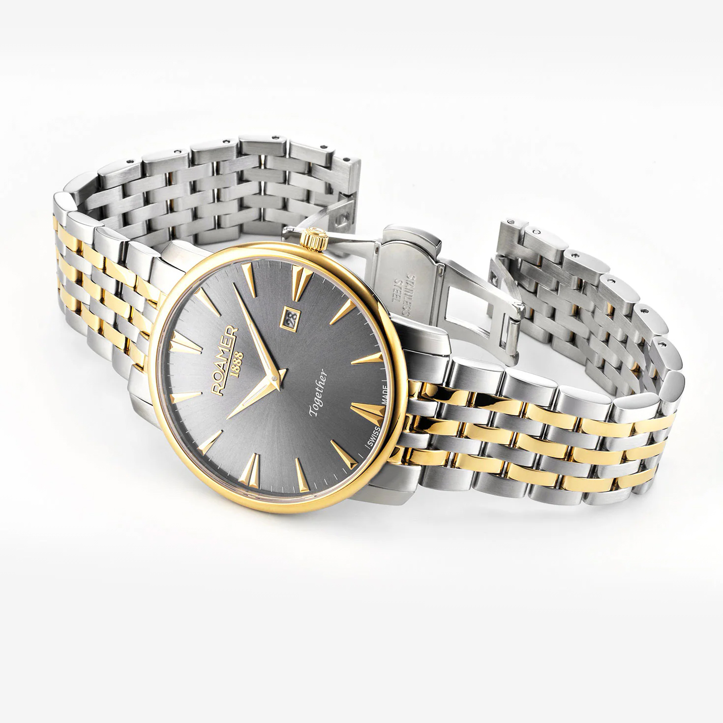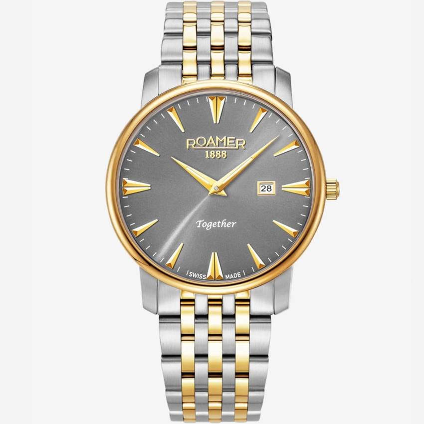 Roamer Together Gents 40mm Watch – Grey Dial, Silver & Gold Stainless Steel Bracelet, Swiss Quartz